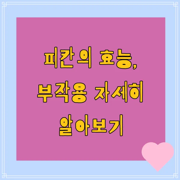 피칸의 효능을 제대로 누리려면, 적정량을 섭취하고 올바른 방법으로 보관하는 것이 중요해요! 위에서 알려드린 주의사항들을 잘 기억하셔서, 피칸을 건강하고 맛있게 즐겨보세요! 😄