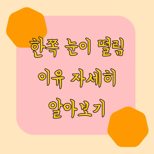 카페에서 커피 한 잔 마시다가 갑자기 눈이 twitch, twitch! 떨리면 은근히 신경 쓰이죠? 저도 그런 경험이 종종 있는데요. 특히 한쪽 눈이 떨릴 때 는 더 그렇더라구요. "혹시 무슨 큰 병인가?" 걱정도 되고... 그래서 오늘은 우리를 깜짝깜짝 놀라게 하는 한쪽 눈 떨림 의 이유에 대해 자세히 알아보려고 해요. 눈 떨림의 원인 부터 증상 , 그리고 예방 및 관리법 까지! 눈 떨림에 좋은 음식과 영양소 정보도 놓치지 않을 거예요. 함께 알아보면서 눈 건강을 지키는 꿀팁 얻어 가세요!